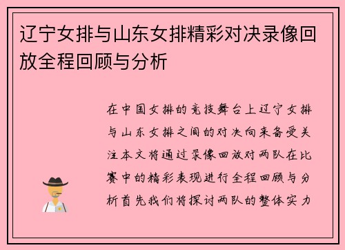 辽宁女排与山东女排精彩对决录像回放全程回顾与分析